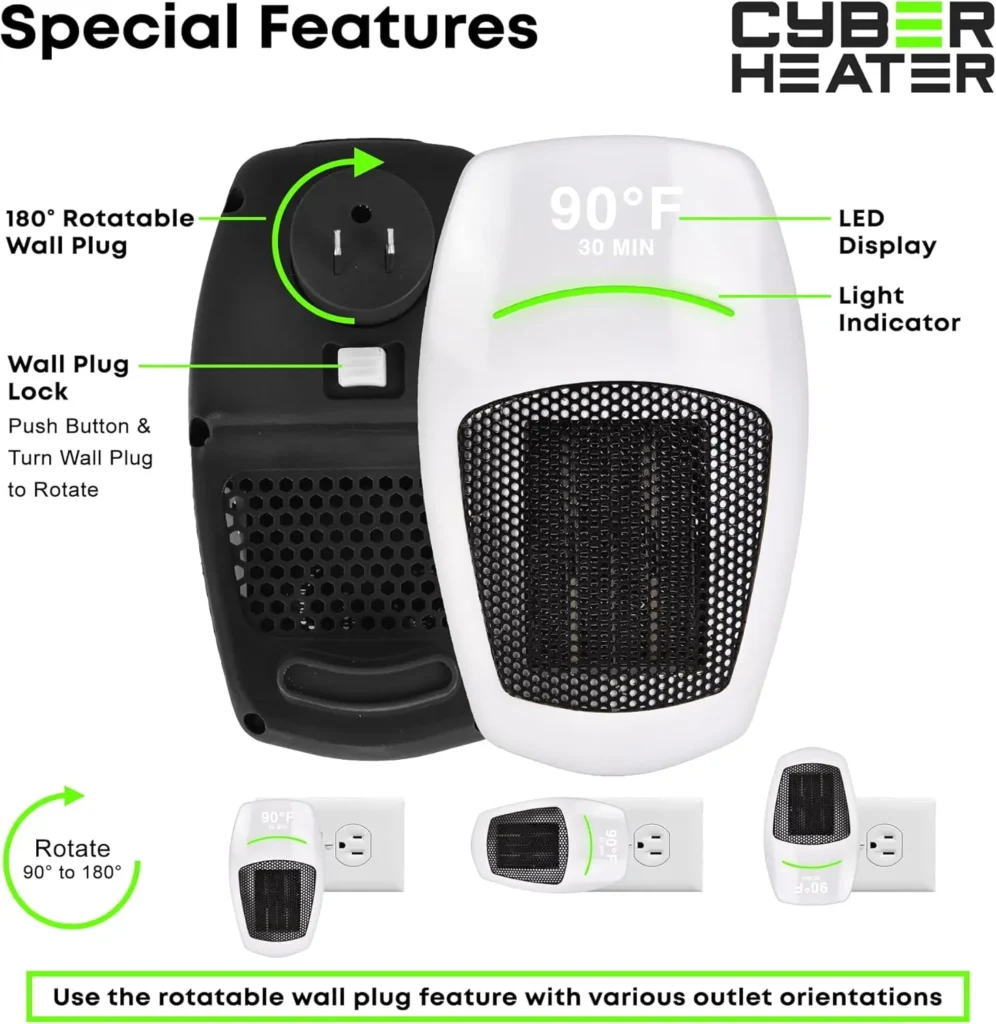 Powerful space heater delivers warmth to any space in minutes, providing instant relief from the cold. Its compact design and user-friendly features make it the perfect solution for quick and efficient heating. Enjoy precise temperature control, a convenient built-in timer, and absolute safety, all while saving money on your energy bills. See the difference Cyber Heater can make this cold season today!